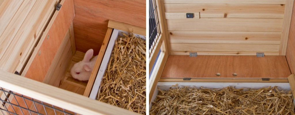 Čištění klece pro hlodavce zvládnete během pár minut. Práci velmi usnadní vyjímatelné plastové trusníky o výšce 6 cm, které stačí z klece vysout, vyčistit a vrátit zpět. Při údržbě klece jistě oceníte také výklopnou střechu s fixací.