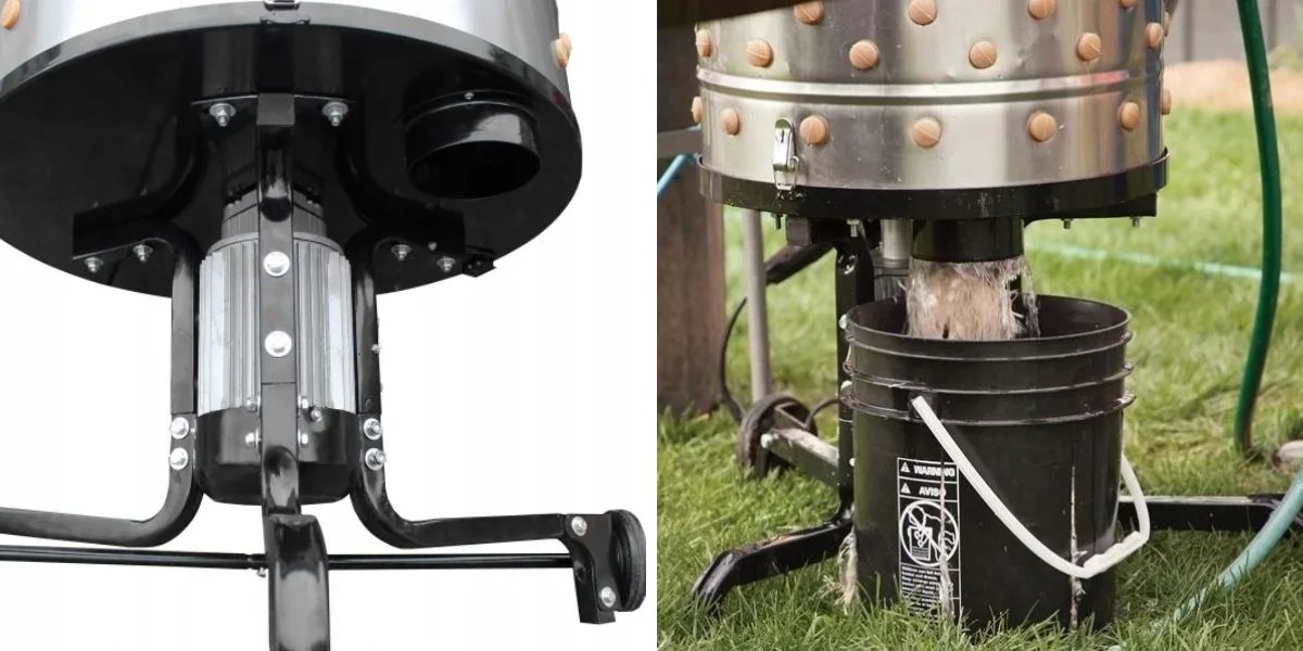 Škubačka drůbeže na vrtačku s ochranným krytem a stojanem - slepice
