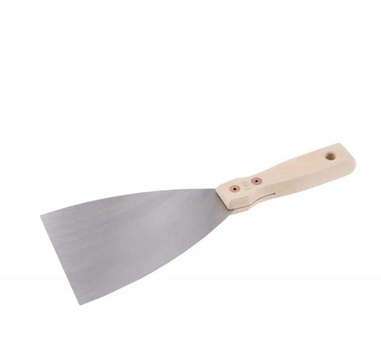 Klasická špachtle vhodná jak na oškrabování zdí tak na vyspravování prasklin, prohlubní, děr a dalších mechanických vad. Používá se také k odstranění slepičího trusu z podlahy kurníku.