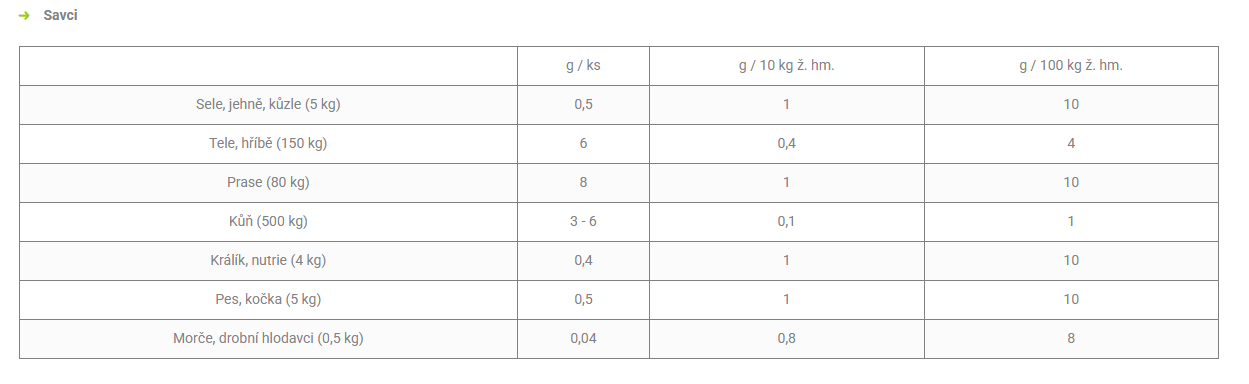Přípravek je možné podávat denně a dlouhodobě v uvedené dávce nebo po dobu 5 – 10 dnů ve dvojnásobné dávce a kůru opakovat po 3 – 4 týdnech. U rostoucích zvířat lze používat horní hranici dávkování. Přípravek je určen k aplikaci do pitné vody, případně i k zamíchání přímo do krmiva. Nejprve se denní dávka rozpustí v menším množství vody v poměru cca 1 : 10 a dále se tento roztok přidává do napáječek nebo do zásobníku vody. Roztok se před každým použitím připravuje čerstvý. Při podávání v krmivu je nutné dávku rovnoměrně zamíchat.