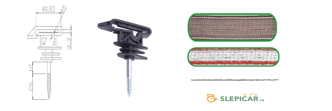Tradiční izolátor na vodivé pásky o maximální šíři 5 cm s lankem v průměru 6 mm využijete k upevnění páskových i lankových vodičů u venkovních elektrických ohradníků. Volíte-li též variantu páska i lanko naleznete v izolátoru nepostradatelného pomocníka.