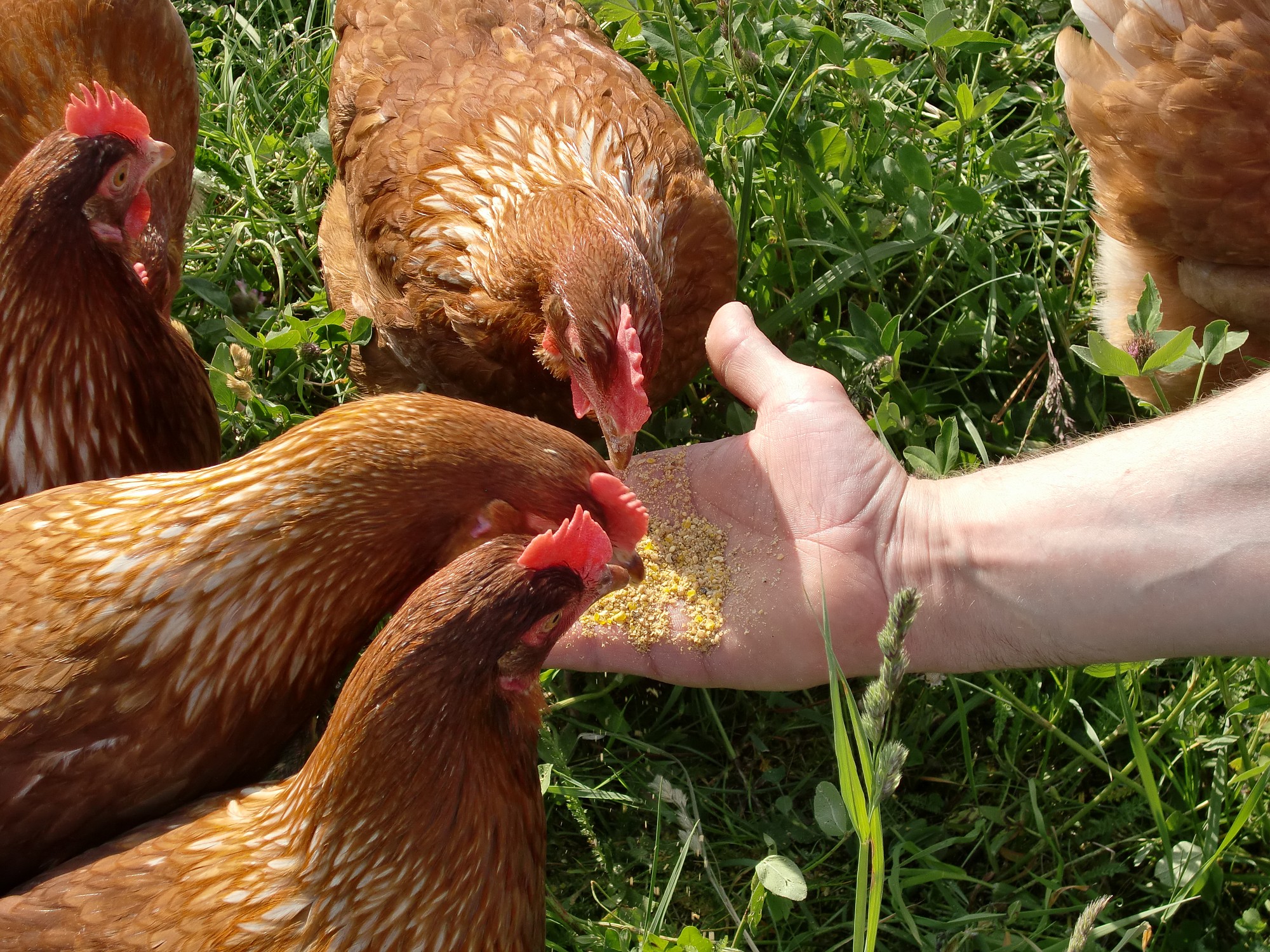Pokud se ke slepičkám budete chovat s láskou, dají se ochočit tak, že vám budou zobat z ruky.