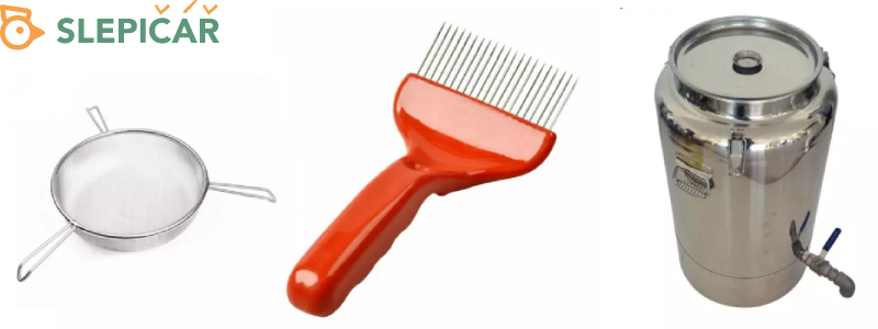 Dvouplášťová nerezová nádoba na med s uzavíratelným víkem a vlastní výpustí z nerezové oceli.