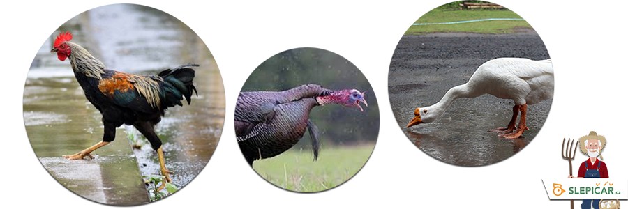Jak jistě všichni víme, kromě hrabavé drůbeže existuje i vodní drůbež, která vodu miluje a slejvák ani bouřka ji spíše život obohatí než otráví. Kachny i husy mají své peří nepromokavé a tudíž žádné podchlazení nebo nastydnutí u nich nehrozí. Jinak je to ale u slepic a předvším u krůt. Jejich opeření není na vodu stavěné a pokud budou delší dobu vystaveny dešti nebo bouřce dozajista u nich propukne následující: